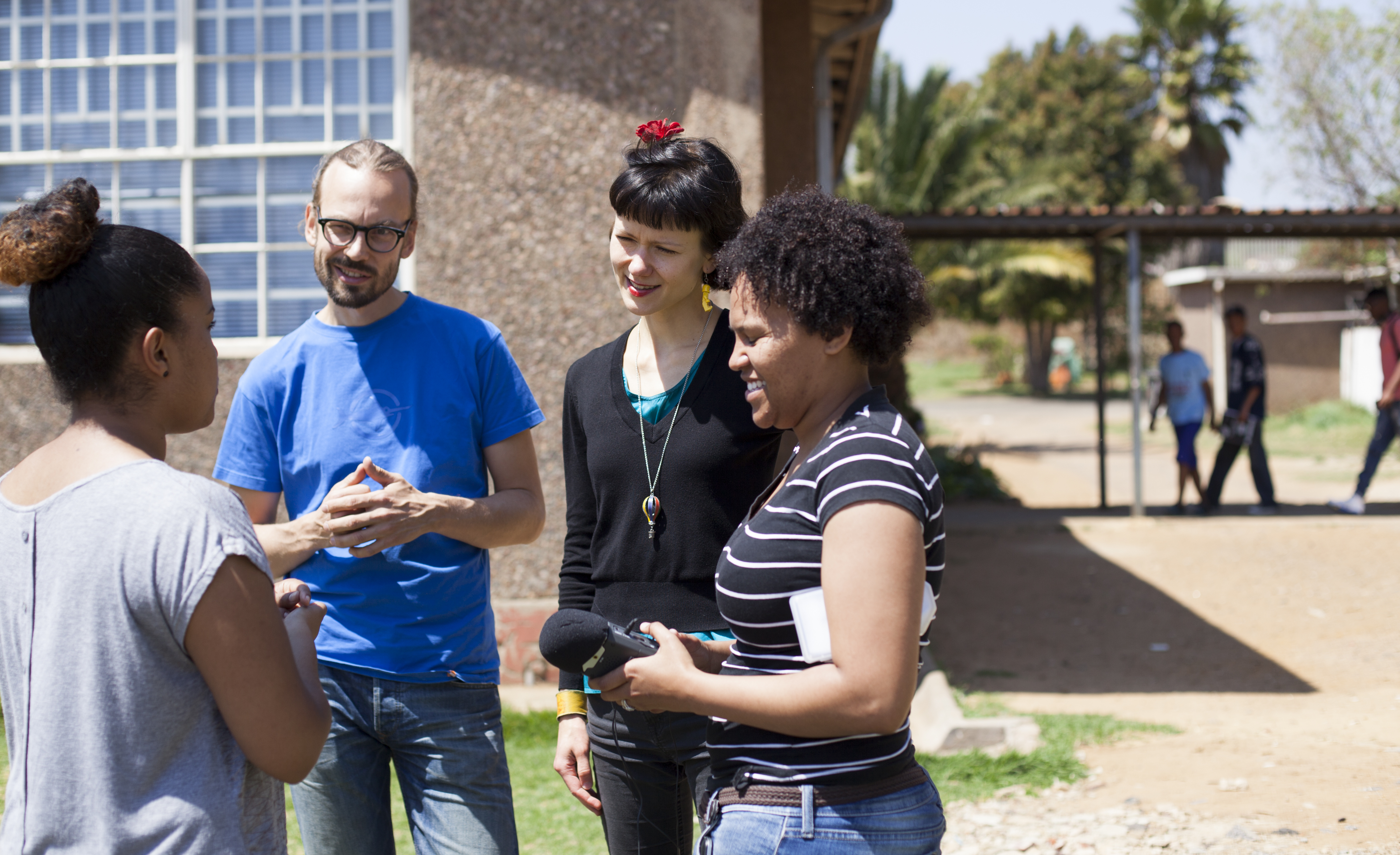 Matias Harju on musiikin lehtori, äänitekniikan opettaja ja muusikko. Kaisa Osola on median ja puheilmaisun opettaja ja lausuja. Pohjoisessa asumme Kallion ilmaisutaidon lukiossa Helsingissä. Nimenomaan noin. Nyt asumme Johannesburgissa ja työskentelemme Westbury Youth Centressä yhdessä paikallisten nuorten, nuorisotyöntekijöiden, yhteisötaitelijoiden ja radioammattilaisten kanssa. Opetamme radiotyötä ja opimme siitä vielä enemmän.